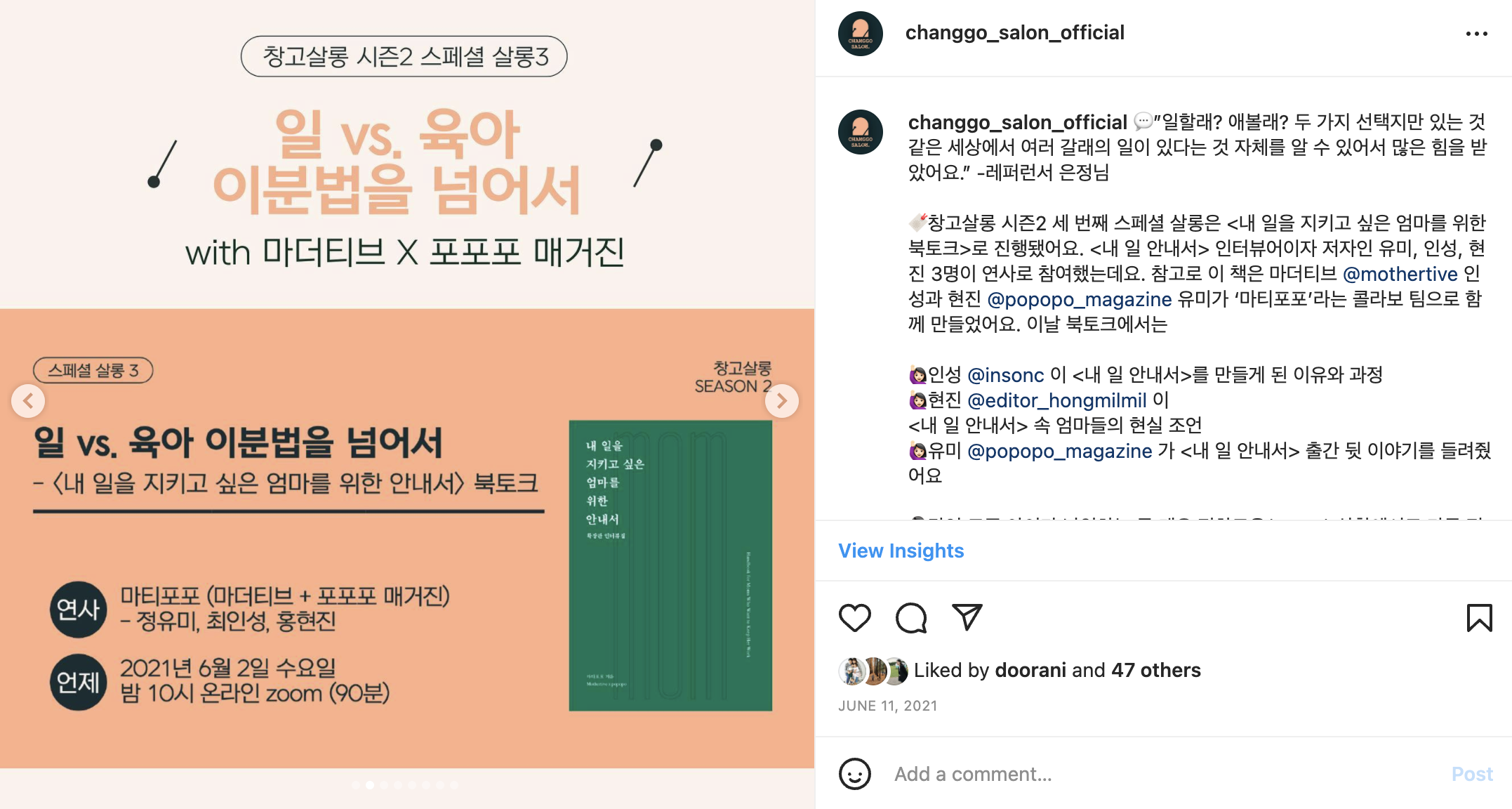 ● 시즌 2 마티포포 <내 일을 지키고싶은 엄마를 위한 안내서> 북토크 스페셜 살롱 후기