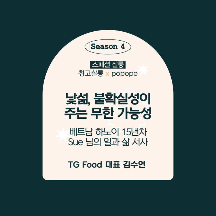 이번 시즌 4 주제 #낯섦 키워드 및 창고살롱이 추구하는 가치와 결이 잘 맞는 레퍼런서 멤버가 아닌 외부 인사를 초대해 모시고 여성의 지속가능한 일과 삶을 나눕니다.