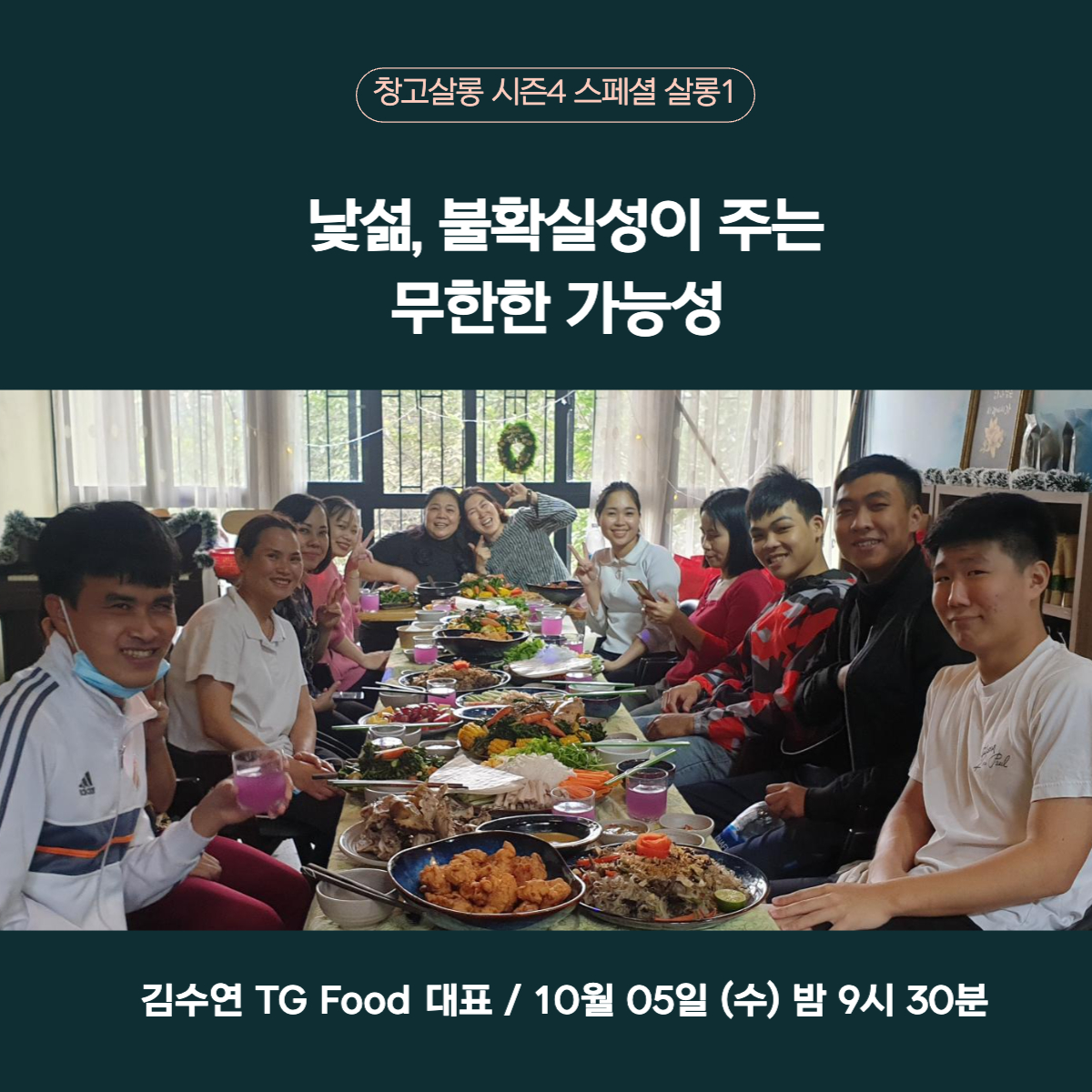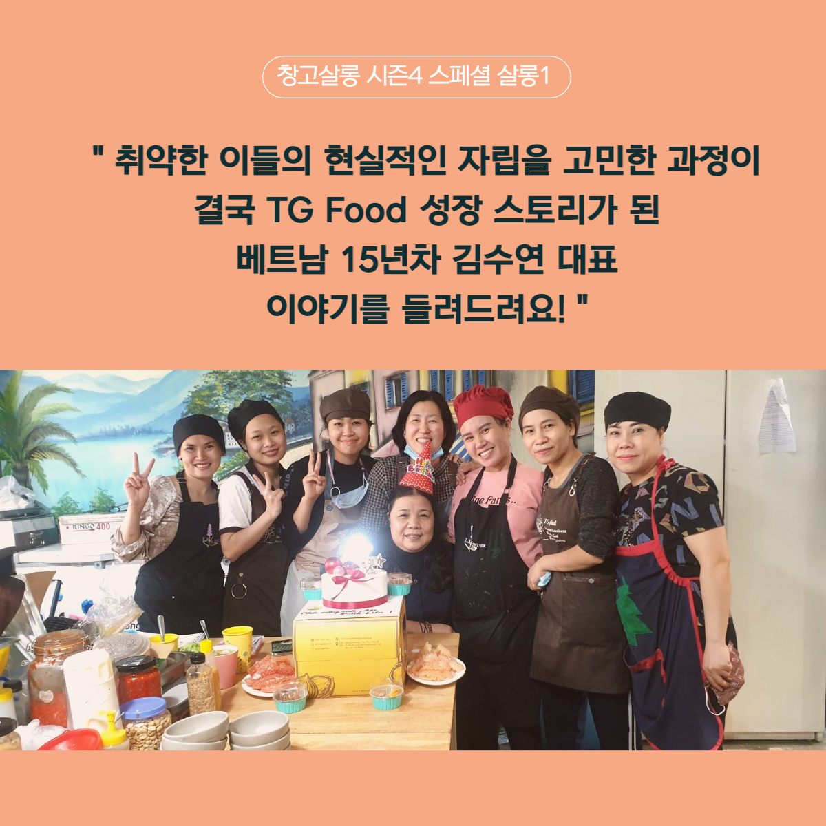 TG food가 개발한 건강한 음식이 절망의 시간을 지나는 절실한 누군가에게 희망이 되는 일, 그리고 그 희망이 또 다른 누군가에게 사랑을 전하는 일을 한다고 답하는 그녀의 일과 삶의 대서사가 궁금하지 않으신가요?